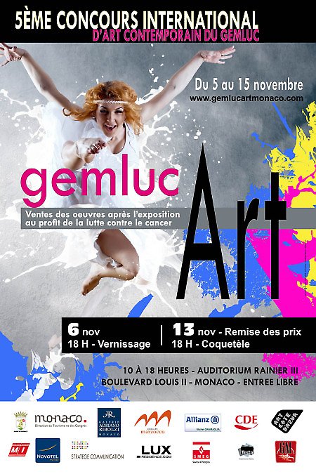 Exposition de la sculpture monumentale "NINA" au 5 ème concours international d'art contemporain du GEMLUCART* à Monaco du 6 novembre à 18h (vernissage) au 13 novembre 2013 à 18 h (remise des prix)